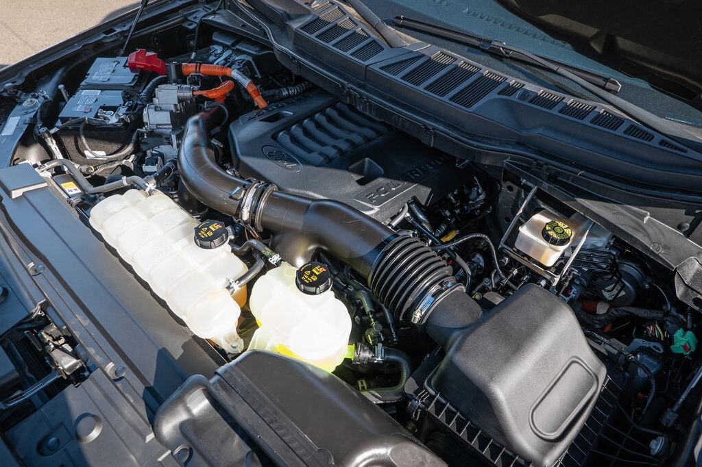 Gray Metallic 2022 Ford F-150 Lariat 4WD 10-Speed Automatic 3.5L PowerBoost Full-Hybrid V6 3.5L PowerBoost Full-Hybrid V6, 4WD, 6" Bright Polished Running Board, Chrome 2-Bar Grille w/4 Minor Bars, Chrome Door & Tailgate Handles w/Body-Color Bezel, Chrome Single-Tip Exhaust, Chrome Skull Caps on Exterior Mirrors, Class IV Trailer Hitch Receiver, Electronic Locking w/3.73 Axle Ratio, Equipment Group 501A Mid, Extended Range 36 Gallon Fuel Tank, Exterior Parking Camera Rear, Front dual zone A/C, Integrated Trailer Brake Controller, Lariat Chrome Appearance Package, Max Trailer Tow Package, Memory seat, Onboard 400W Outlet, Pedal memory, Power driver seat, Pro Trailer Backup Assist, Radio: B&O Sound System by Bang & Olufsen, Twin Panel Moonroof, Universal Garage Door Opener, Wheels: 18" Chrome-Like PVD.
