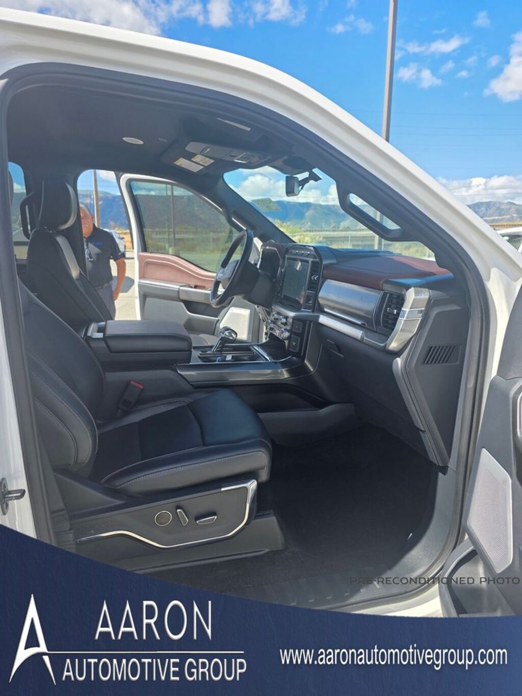 Stepping inside, the Lariat's premium cabin offers an unparalleled level of comfort and sophistication. The leather-trimmed bucket seats, heated front and rear seats, and power-adjustable steering column with memory ensure you and your passengers can travel in the utmost comfort. The Interior Work Surface and Tailgate Work Surface provide versatile workspace options, making this F-150 a true multifunctional companion.