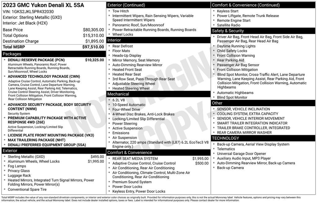 Powered by the renowned EcoTec3 6.2L V8 engine and paired with a 10-Speed Automatic transmission, this Yukon XL Denali delivers exceptional performance and efficiency, with an impressive 14 city/18 highway MPG rating.